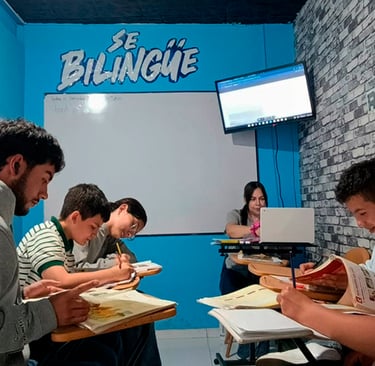 Somos una escuela de inglés especializada en enseñanza comunicativa y práctica para todas las edades. Aprenderás de forma dinámica y tecnológica, mejorando tus habilidades conversacionales.